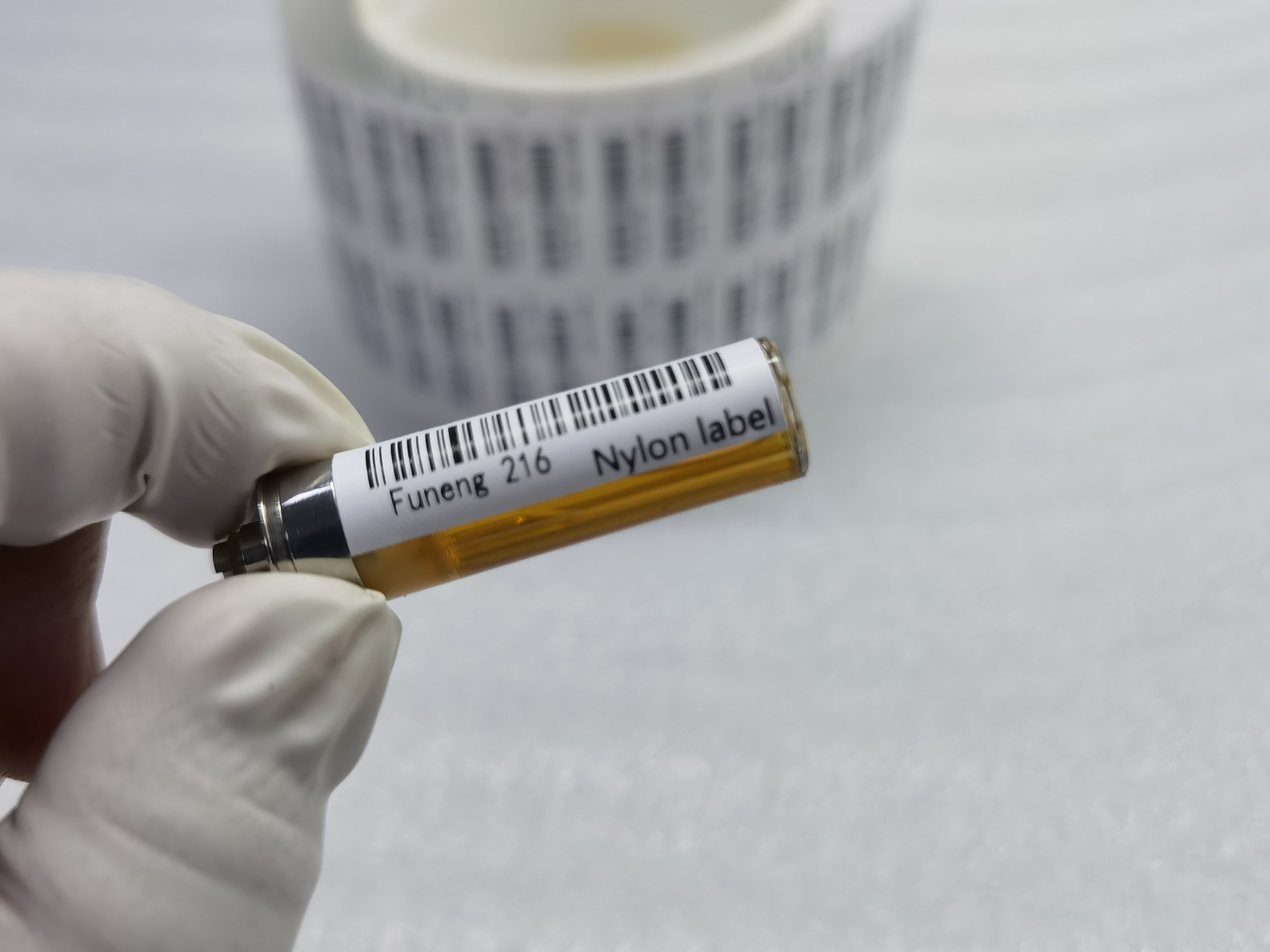 উচ্চ আঠালো নাইলন কাপড়ের লেবেলগুলি (PL8590) অত্যন্ত নমনীয় এবং টাইট বাঁকা পৃষ্ঠগুলির জন্য আদর্শ যেমন ভায়াল, তারগুলি এবং তারগুলি।