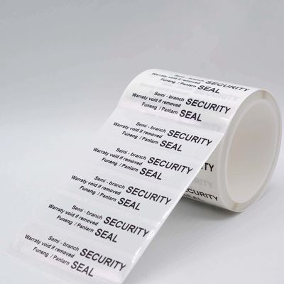 85um 2 মিলি টেম্পার প্রুফ সিকিউরিটি স্টিকার সাদা চকচকে সেমি ট্রান্সফার কম অবশিষ্টাংশ