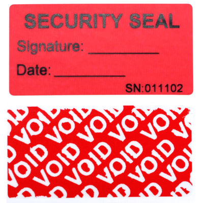90um 2 মিলি টেম্পার প্রুফ সিকিউরিটি স্টিকার রেড ম্যাট সেমি ট্রান্সফার উচ্চ অবশিষ্টাংশ